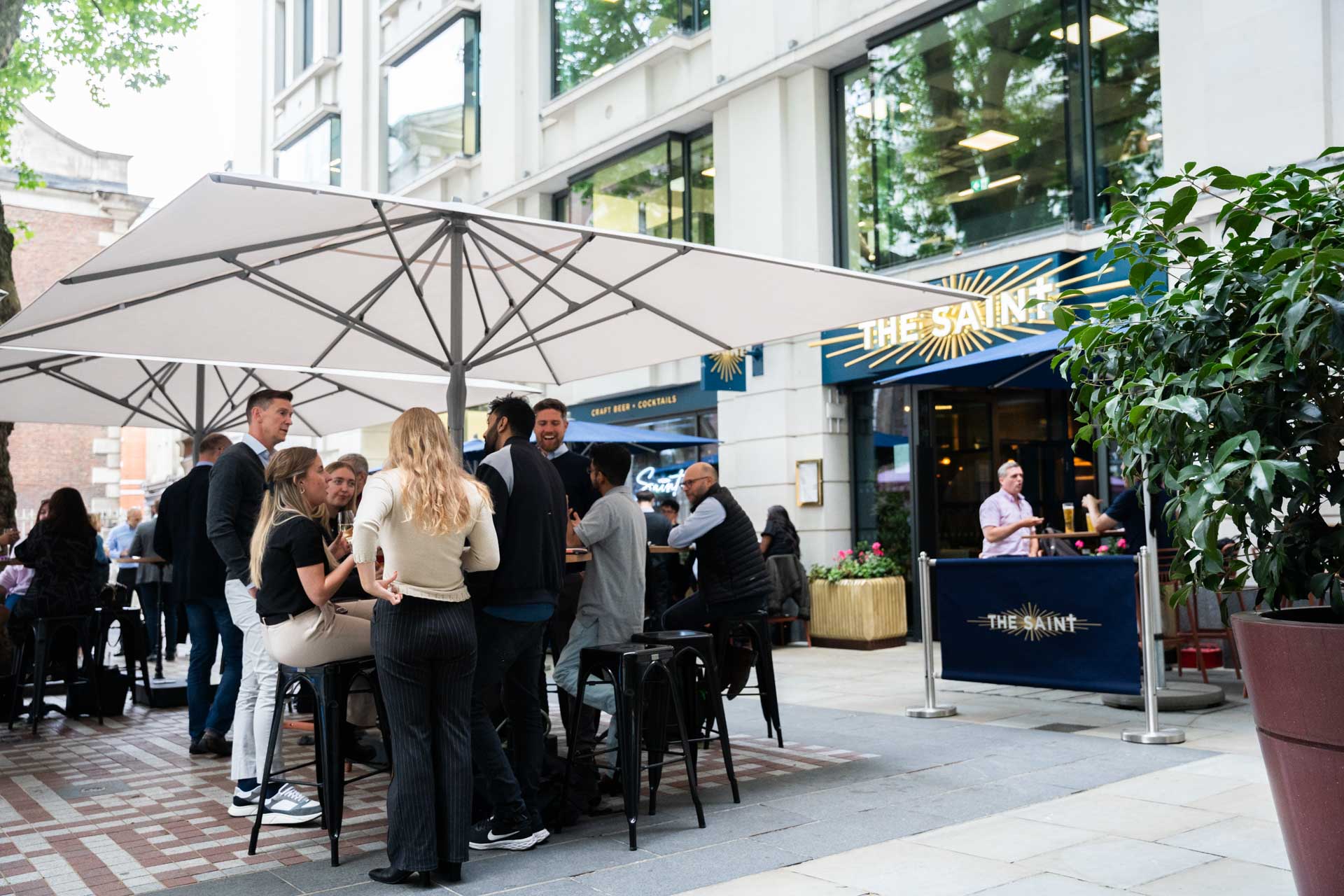The Saint, located in St Paul's, Bow Lane, has a great outdoor terrace in the churchyard of Bow Bells that makes it the perfect location for after-work drinks. We are an ideal venue for various occasions, whether you're planning an office social, enjoying summer drinks in the courtyard, or hosting a private event on the weekend.